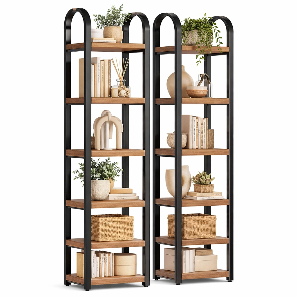 Étagère de rangement style industriel avec structure métal et bois